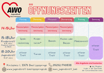 Montag bis Donnerstag immer von 14-15 Uhr kannst du ohne Anmeldung vorbeikommen. Und das Beste ist: die Hausaufgabenhilfe ist kostenlos.