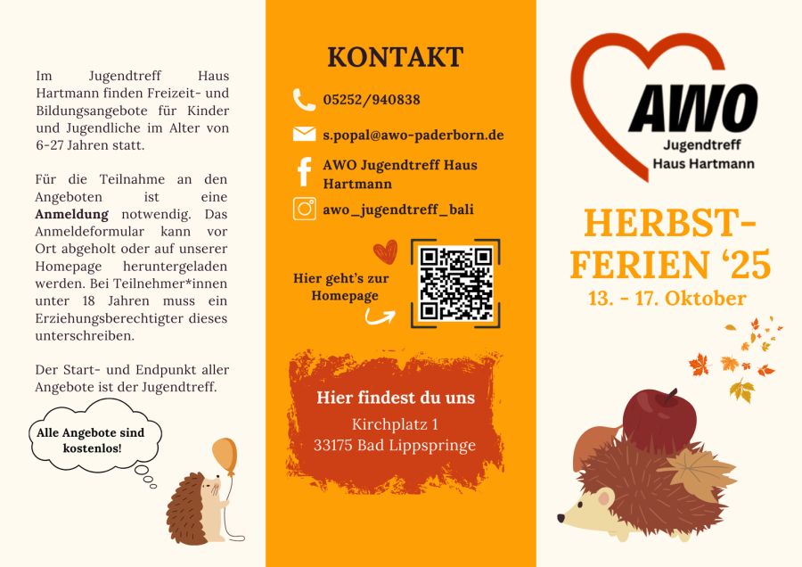 Die Anmeldezettel könnt ihr bei uns persönlich abholen oder aber auch auf unserer Homepage unter dem Reiter Herbstferien herunterladen!